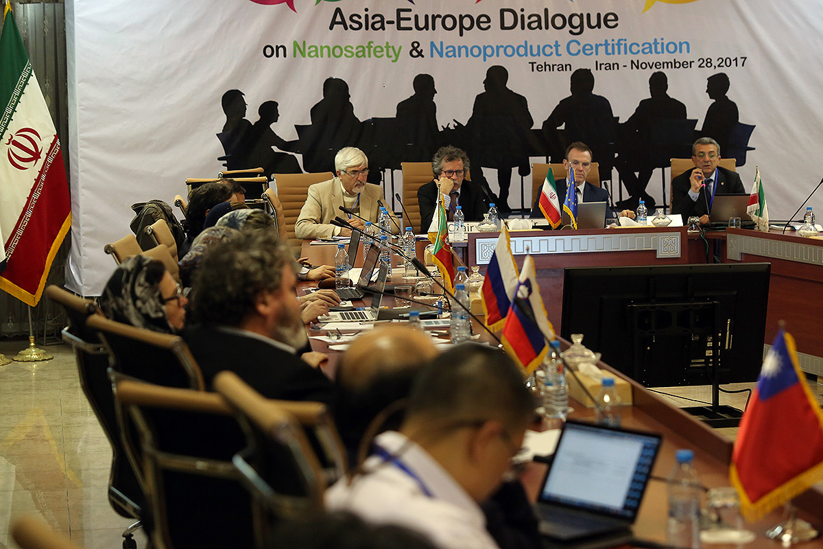 اولین نشست آسیا-اروپا در زمینه ایمنی و گواهیدهی محصولات فناوری نانو در تاریخ ٨ آذر ماه ١٣٩٦ در دانشگاه علوم پزشکی تهران برگزار شد. در این نشست ایران پیشنهاددهنده آغاز گفتمان دو قاره اروپا و آسیا برای توسعه علوم نانویی و تدوین استانداردهای ارزیابی محصولات نانویی بود تا با یکسوسازی فعالیتها و قوانین این حوزه، مصرفکنندگان این فناوری بتوانند با آسودگی و آرامش از ایمنی و سلامت این محصولات برای انسان و محیطزیست از آنها استفاده کنند.