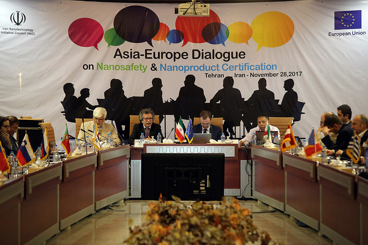 اولین نشست آسیا-اروپا در زمینه ایمنی و گواهیدهی محصولات فناوری نانو در تاریخ ٨ آذر ماه ١٣٩٦ در دانشگاه علوم پزشکی تهران برگزار شد. در این نشست ایران پیشنهاددهنده آغاز گفتمان دو قاره اروپا و آسیا برای توسعه علوم نانویی و تدوین استانداردهای ارزیابی محصولات نانویی بود تا با یکسوسازی فعالیتها و قوانین این حوزه، مصرفکنندگان این فناوری بتوانند با آسودگی و آرامش از ایمنی و سلامت این محصولات برای انسان و محیطزیست از آنها استفاده کنند.