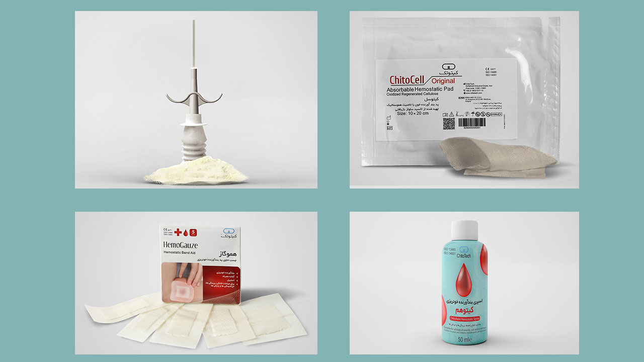 وی میگوید: «در شرکت کیتوتک چندین گروه محصول تولید میشود. گروه اول، ترمیمکنندههای زخم هستند که خانواده بزرگی از محصولات را شامل میشوند و برای انواع زخمها، بهویژه زخمهای مزمن و مقاوم، کاربرد دارند. گروه دوم محصولات، مربوط به بندآورندههای خونریزی هستند. این محصولات کاربرد گستردهای در جراحیها دارند، بهویژه برای بیمارانی که مشکلات انعقاد خون دارند، مانند بیماران هموفیلی. درحال حاضر ما سبد این محصولات را نیز توسعه دادهایم. برخی از این بندآورندههای خونریزی بهگونهای طراحی شدهاند که برای مصرف خانگی نیز مناسب باشند، مثلاً در موارد بریدگی یا خراشهای سطحی که در زندگی روزمره رخ میدهد، بهراحتی قابل استفاده هستند.»