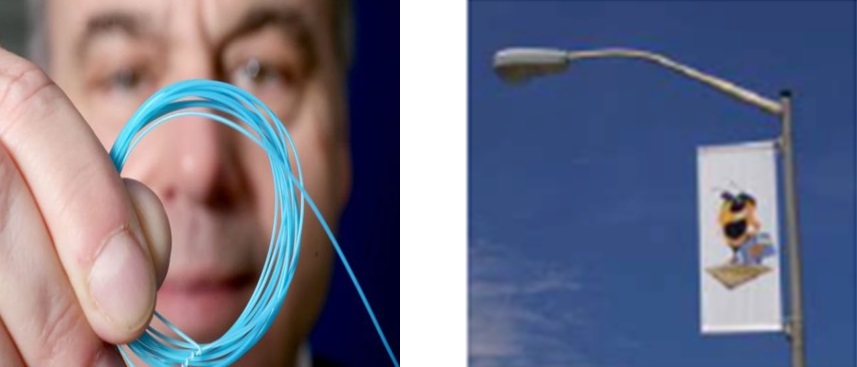 (سمت راست) استفاده از پارچه های پوشش داده شده با پیزوالکتریک جهت برداشت انرژی از جریان باد (سمت چپ) الیاف پیزوالکتریک