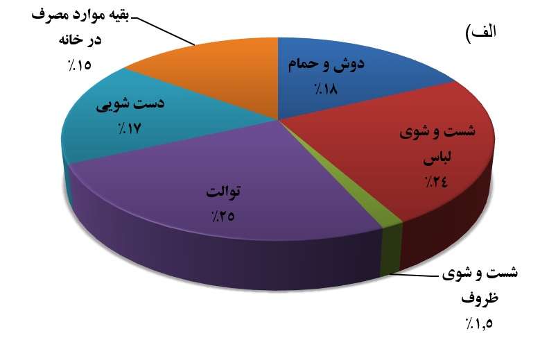 شکل 2 : میزان مصرف آب توسط خانوار در داخل و خارج از منزل [3].
