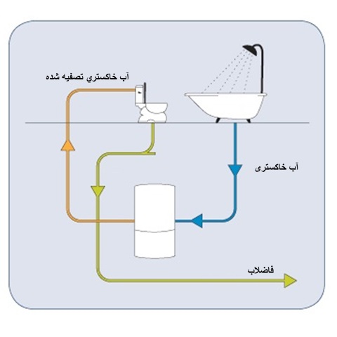 آب خاکستری، مجموعه ای از پسابهای ظرفشویی، دستشویی و حمام میباشد و میتواند با ایجاد ساز و کاری جدید، برای مصارف مختلف خانه مورد استفاده قرار گیرد. به طور کلی استفاده از آب خاکستری در بخشهای مختلف به شرح زیر مطرح است:
