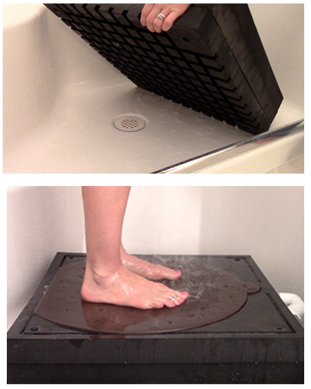 شرکت showerspring ، جهت تصفیه آب خاکستری، کف پوش مخصوص دوش حمام را طراحی و تولید کرده است که میتواند حجم زیادی از آب را تصفیه کند و شویندهها را با آب کمتری به سمت فاضلاب هدایت کند. آب تصفیه شده جهت مصارف مختلف مانند فضای سبز قابل استفاده خواهد بود