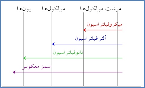 شکل 2: انواع مختلف فیلتراسیون با توجه به نوع ترکیبات قابلجداسازی