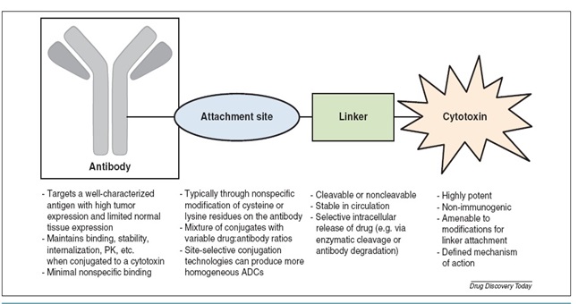 هر داروی ADC از سه بخش پادتن، دارو و اتصال دهنده (Linker) تشکیل شده است. داروهای متصل شده به پادتنها، ویژگی تمایلی بودن پادتن را تحت کنترل درآورده و یک عامل سایتوتوکسیک را به سمت تومور هدایت می¬کنند، در نتیجه بازدهی فعالیت پادتن و دارو افزایش مییابد. از طرف دیگر متصل شدن، توزیع زیستی دارو را تحت تاثیر قرار داده و سلولهای سرطانی را به صورت بهینه و هدفمند در معرض عامل سایتوتوکسیک قرار میدهد و امکان استفاده از عوامل بالقوه را فراهم میسازد.