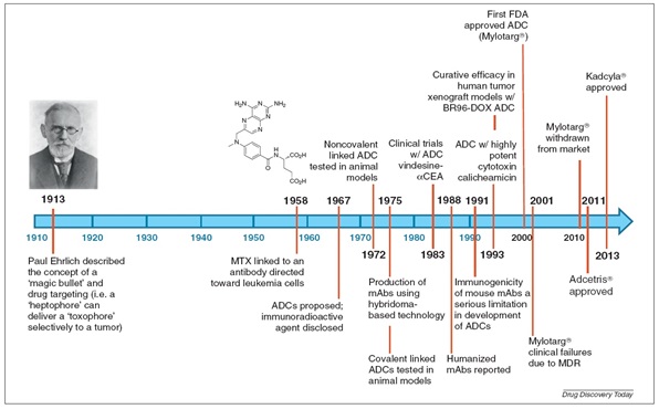 خطوط زمانی تاریخچه تولید پادتنهای کانجوگه شده به دارو