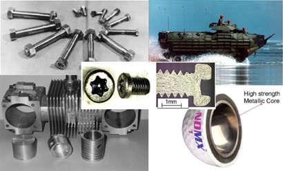 شکل 4– مثال هایی از کاربرد فلزات نانوساختار تولید شده به روش تغییرشکل پلاستیک شدید در صنایع مختلف.