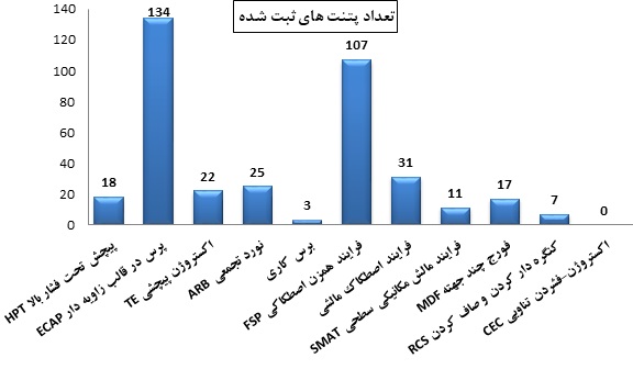 هر کدام از این روشها ویژگیهای خاص خود را داشته و برای ایجاد ساختار نانو در فلزات و تولید محصولات در اشکال مختلف ورق، لوله و بالک ماده به کار برده میشوند. طی بررسیهای انجام شده در پایگاههای بینالمللی ثبت پتنت، نمودار زیر تنظیم شده است که نشاندهندهی میزان توجه پژوهشگران در سالهای اخیر به هریک از این روشها است. در شکل 7 نیز مقایسهی آماری این پتنتها صورت گرفته است.