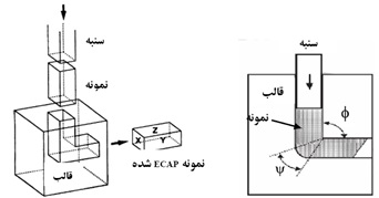 همانگونه که در شکل 9 نشان داده شده است، ابعاد سطح مقطع نمونه در حین اعمال کرنش از طریق این فرایند ثابت باقی میماند. لذا میتوان نمونه را به دفعات متوالی از قالب عبور داد و در هر عبور مقداری کرنش پلاستیک در فلز ذخیره کرد.