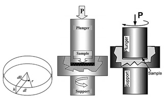 در این روش نمونه اولیه معمولاً به شکل دیسک نازک بوده که به طور همزمان تحت فشار هیدرواستاتیک و تنشهای برشی قرار میگیرد. اصول این روش به صورت شماتیک در شکل 10 نشان داده شده است.