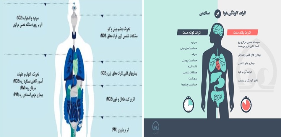 شکل2. قرار گرفتن در معرض گازهای CO، HC، NOx و تأثیر آنها بر سلامت انسان.