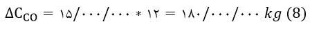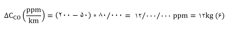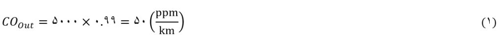 میزان انتشار گاز سمی CO از کاتالیست خودرو به محیط اطراف برحسب ppm/km= میزان غلظت گاز CO ورودی به کاتالیست از طریق موتور خودرو حاصل از احتراق × میزان درصد تبدیل کاتالیست خودرو