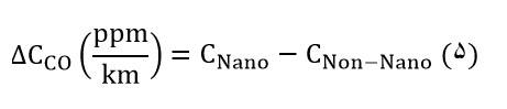 بهعنوانمثال میزان تفاوت انتشار گاز CO از دو مبدل کاتالیست نانویی و غیرنانویی با توجه به اطلاعات درج شده در جدول 2 به شرح زیر است: