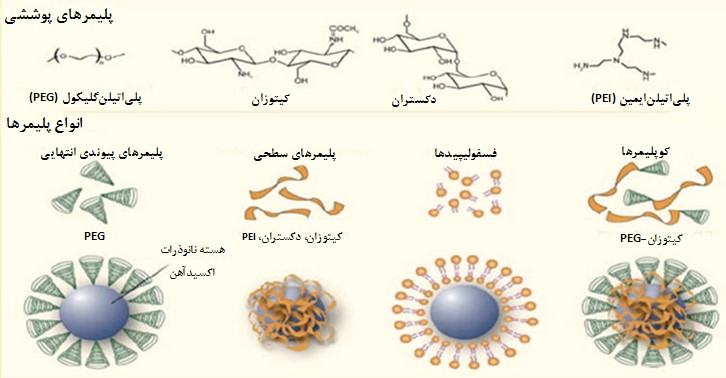 پلیمرهای زیستتخریبپذیر که به طور غالب برای پوشش دادن نانوذرات مغناطیسی در دارورسانی و رهایش کنترل شده مواد شیمیدرمانی استفاده میشوند، شامل موارد زیر میباشد (شکل 3):