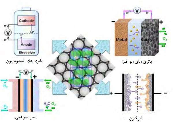• استفاده از کربن با ساختار نانو متخلخل به‌عنوان الکترود باتری قابل شارژ لیتیوم-هوا
