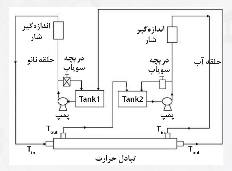 سیستم پیشنهادی برای انتقال حرارت به کمک نانوسیال (آب + نانوذرات Al2O3) در شکل ۲ نشان داده شده است]۲۲[.