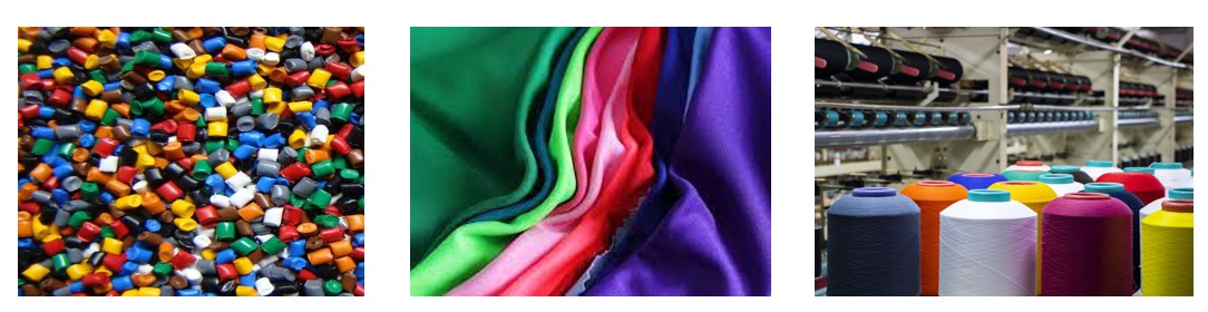شکل 1- نمونه‌هایی از نخ پلی‌استر، پارچه پلی‌استر و مستربچ پلی‌اتیلنی آنتی‌باکتریال [7]