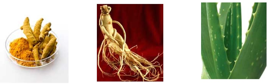 شکل 3: زردچوبه، گیاه جینکو، صبرزرد سه گیاه مهم در درمان سرطان (از سمت چپ به راست)