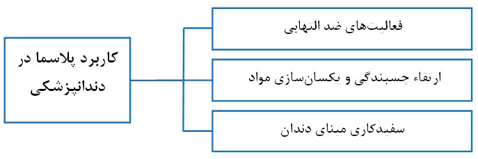 سه کاربرد اصلی پلاسما در دندانپزشکی ظهور یافته است که در نمودار زیر قابل مشاهده میباشد: