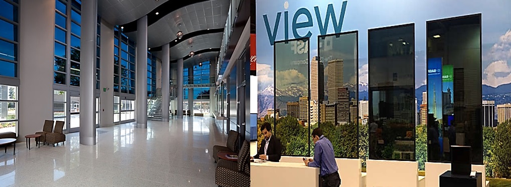 شکل 2: استفاده از شیشههای هوشمند تجاری شده با قابلیت تغییر رنگ.