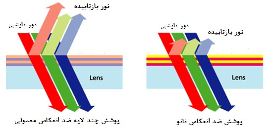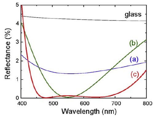 شکل 6: پوششهای ضد انعکاس نانو با بازتابپذیری کمتر نسبت به پوششهای ضد انعکاس چند لایه معمولی، توانایی جلوگیری از انعکاس نور در طول موجهای گستردهتر را دارند]7[.