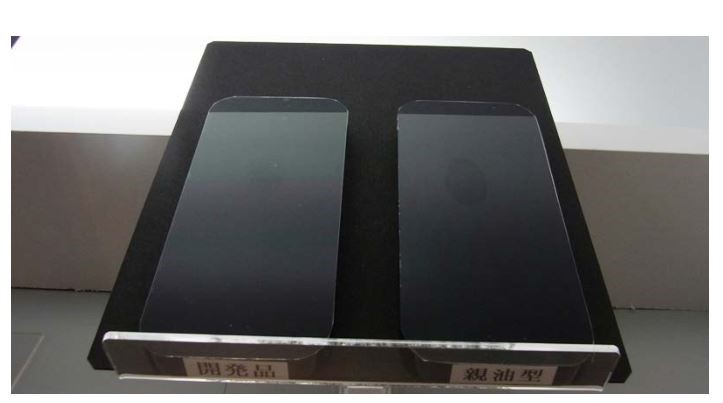 شکل 9 : لایه ضد اثر انگشت با برند Toray ( عکس سمت چپ) و لایه روغن دوست (سمت راست )