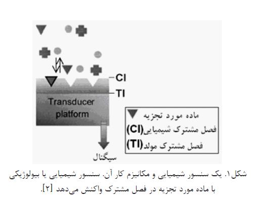 شکل 1: سنسور شیمیایی با ماده مورد تجزیه در فصل مشترک واکنش میدهد]2[.