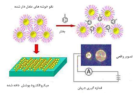 شکل 3: نمونهای از سازوکار حسگرهای شیمیایی مبتنی بر نانوخوشههای طلا