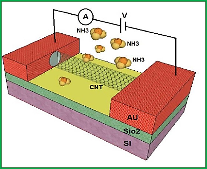شکل 5: شمایی از عملکرد نانولوله کربنی در سنسور گازی برای تشخیص گاز آمونیا(NH3) ]4[.