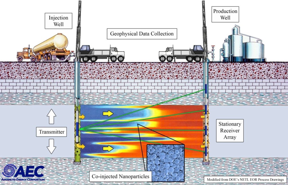 در این فناوری از یک فرستنده و دریافت کننده فرکانس الکترومغناطیسی با فرکانسهای کوتاه (کوچکتر یا مساوی با 10 هرتز) در درون چاه استفاده میشود. جهت امکان تصویر برداری، یک نانو سیال مغناطیسی حاوی نانوذرات با ابعاد کوچکتر از100 نانومتر به درون سازند تزریق میشود. گیرنده و فرستنده الکترومغناطیسی میتواند به صورتهای مختلف قرار بگیرد به طور مثال گیرنده و فرستنده در داخل چاه است و یا فرستنده در مخزن و دریافتکننده الکترومغناطیسی بر روی سطح باشد و یا میتواند برعکس قرار گیرد. فاصله گیرنده و فرستندههای الکترومغناطیسی میتواند تا 1000 متر از هم باشد. شماتیکی از این فرایند در شکل زیر نشان داده شده است: