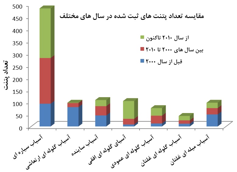 تعداد پتنتهای ثبت شده در رابطه با روشهای آلیاژسازی و فعالسازی مکانیکی در پایگاه بینالمللی ثبت پتنت به بیش از 1000 مورد میرسد که جزئیات بیشتر این آمار در جدول 2 و نمودارهای زیر نشان داده شده است ]8[.
