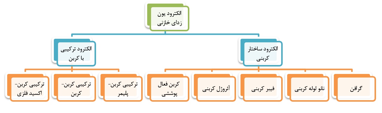 سیستمهای یون زدای خازنی در گذشته به دلیل اشباع شدگی سریع و کم بودن ظرفیت جذب یون، مورد توجه نبود. با ورود فناوری نانو در دهه اخیر و تولید ابر خازن ها، استفاده از سیستم های یون زدای خازنی جهت رفع شوری آب مورد توجه واقع شدهاست. در بیشتر موارد سطح الکترودها با ساختارهای نانویی کربن پوشانیده میشود؛ چراکه علاوه بر داشتن خاصیت رسانایی، به دلیل متخلخل بودن، ساختارها ظرفیت جذب بالایی خواهند داشت. همچنین در برخی از الکترودهای مورد استفاده در یون زدای خازنی از سطوح ترکیبی کربن با انواع نانو ساختارها استفاده میشود تا منجر به افزایش طول عمر سطح و همچنین ایجاد ابر رسانایی سطوح گردد (شکل 5 ) .در درخت (نمودار 1) ذیل برخی از مهمترین دسته بندی الکترودها نشان داده شدهاست.