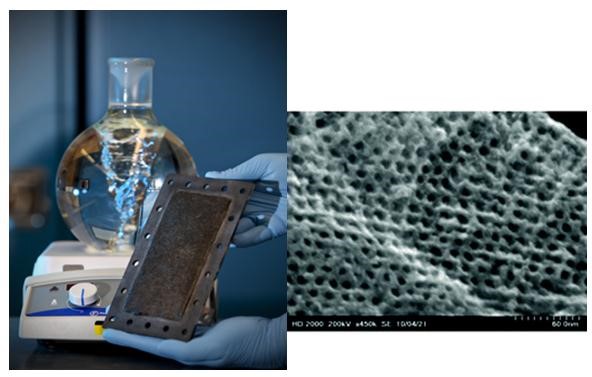 تولید الکترودهای ورقهای قابل تعویض یکی از محصولات مورد نظر در صنعت تصفیه آب خواهد بود. به عنوان مثال الکترود تولید شده توسط ORNL به عنوان 100 اختراع برتر 2011 شناخته شد [7]. یا شرکت دولتی Lawrence Livermore National Laboratory سرمایه گذاری عظیمی در تولید ابر الکترودهای سیستم یون زدای خازنی کردهاست ( شکل 14) [16 و 17]. بسیاری از سازمانهای دولتی در کشورهای پیشرفته به اهمیت سیستمهای یون زدای خازنی پی برده اند؛ به عنوان مثال سازمان مدیریت آب سنگاپور، توسعه یون زدای خازنی را مورد توجه قرار داده است [18].