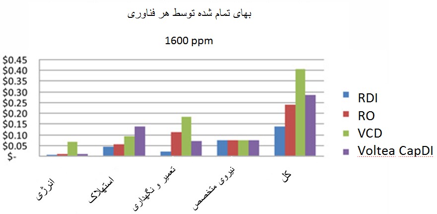 شکل 13 : تفاوت هزینه های ایجاد شده توسط فناوری های مختلف جهت نمک زدایی آب