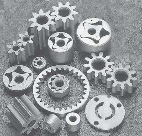 شکل 6- بخشهای مختلف پمپ بنزین خودرو (چرخ دنده ها و روتورها) که از طریق متالورژی پودر ساخته میشوند.