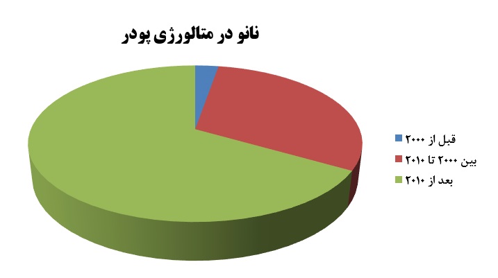 تعداد پایان نامه های ثبت شده در پایگاه اینترنتی ستاد توسعه فناوری نانو در سالهای اخیر، در رابطه با متالورژی پودر به بیش از 51 مورد میرسد که از میان آنها 41 مورد مربوط به مقطع کارشناسی ارشد و 10 مورد از آنها در مقطع دکتری تخصصی انجام گرفته است ][8][.