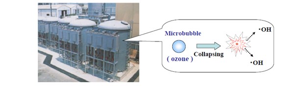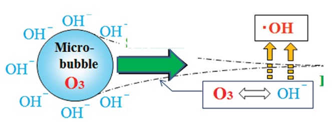 شکل 8 : میکروحباب ازون به دلیل خاصیت گندزدایی O3 و OH. ، بازده بیشتری جهت رفع آلودگی آب خواهد داشت [8].