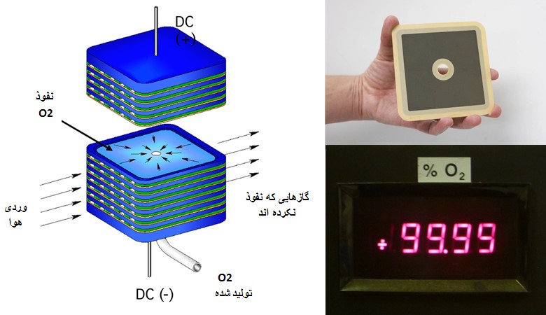برخی از شرکتها مانند شرکت Ceramatec موفق به تولید فناوری غشاء انتقال یون نانو سرامیکی متخلخل شدهاند که میتواند گاز اکسیژن را از هوا جدا کند (شکل 12) [13]. این دستگاهها این قابلیت را دارند که به دستگاه تولید ازون متصل شده و اکسیژن خالص را به آن تزریق کند. همچنین سازمان دولتی NETL [24] بر روی چنین سیستمهایی جهت جداسازی گاز اکسیژن از هوا در ابعاد صنعتی سرمایه گذاری کرده است. بازه زمانی که برای تحقیق و توسعه این پروژه توسط NETL در نظر گرفته شده است بین 1998 تا 2015 بوده که مجموع بودجه اختصاص یافته معادل 296 میلیون دلار بوده است. [14].