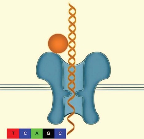 شکل 2: عبور مولکول DNA از میان یک پروتئین نانوحفرهای شکل [3].