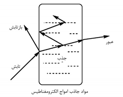 شکل 6. تصویر شماتیکی از نحوه عملکرد یک کامپوزیت جاذب امواج الکترومغناطیسی.