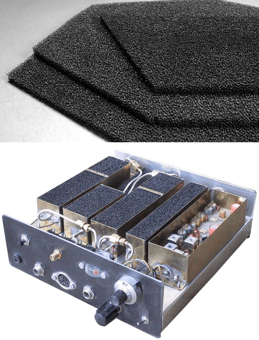 شکل 4. نمایی از یک کامپوزیت جاذب امواج  الکترومغناطیسی متخلخل و یک دستگاه الکترونیکی دارای آن.