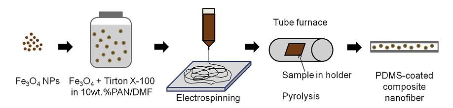 شکل 8. مراحل کاری در روش الکتروریسی برای ساخت یک ماده جاذب.