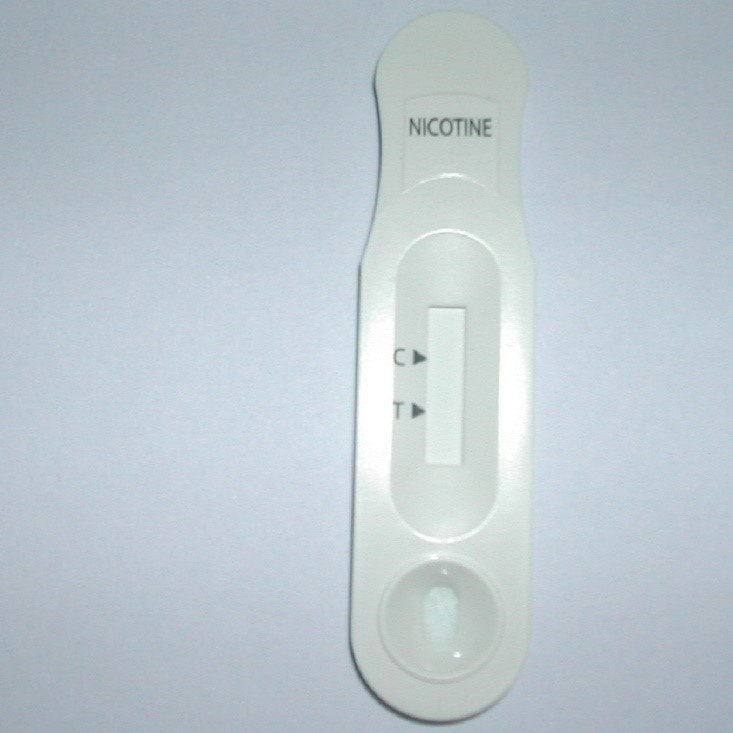شرکت هندی Pammvi یک هلندینگ بزرگ است که در حوزههای مختلف فعالیت میکند. یکی از حوزههای فعالیت این شرکت، حوزه پزشکی است که خود مجموعهای از چند شرکت کوچکتر بهشمار میآید. در میان محصولات ارائه شده توسط این شرکت، یک کیت تست نیکوتین[13] دیده میشود که توسط یکی از شرکتهای زیرمجموعه این هلدینگ توسعه یافته است (شکل ۳). در این محصول که دارای تأییدیه سازمان غذا و داروی آمریکا (FDA)[14] نیز است، از نانوذرات خاصی استفاده شده است که توانایی بالایی در جذب نیکوتین دارند و بدین ترتیب، میتوان انتظار میزان حساسیت قابل قبولی از این سیستم داشت. البته این هلدینگ چندین محصول مشابه دیگر را نیز برای ترکیبات دارویی مختلفی همچون متادون[15]، مورفین[16]، کوکائین[17]، متامفتامین[18] و غیره به بازار ارائه کرده است [۱۲, ۱۳].