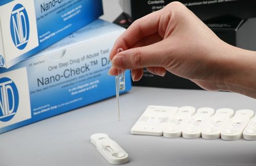 شرکت آمریکایی Nano Ditech Corporation از جمله شرکتهایی است که بهصورت ویژه بر روی توسعه و تولید کیتهای تست دارویی و اعتیاد فعالیت میکند و چندین محصول مختلف را نیز در این حوزه به بازارها عرضه کرده است. هریک از کیتهای تست این شرکت برای آنالیز نمونههای خون، ادرار، پلاسما یا عرق افراد مورداستفاده قرار میگیرد. این شرکت محصولاتی را با برند Nano-Check برای تست ترکیباتی همچون مورفین، متادون، نیکوتین، ماریجوانا[19]، آمفتامین[20]، متامفتامین و برخی داروهای دیگر به بازار عرضه کرده است. در شکل ۴ یک نمونه از محصولات تجاری این شرکت نشان داده شده است [۱۵, ۱۶].
