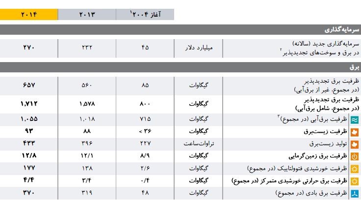 در سال 2014 سرمایهگذاری در برق تجدید پذیر از خالص سرمایهگذاری در نیروگاههای فسیلی پیشی گرفت. سریعترین رشد و نیز بیشترین افزایش در ظرفیت تجدیدپذیرها، به بخش برق با پیشتازی سه فناوری بادی، خورشیدی فتوولتاییک و برقآبی تعلق داشت. کاهش چشمگیر هزینهها، بهویژه در مورد خورشیدی فتوولتاییک و برق بادی، در گسترش برقی شدن وسایل حملونقل و گرمایش مؤثر بوده است و نشان میدهد که امکان همپوشانی بیشتری بین بخشهای مختلف در آینده وجود خواهد داشت. اکنون تجدیدپذیرها در بسیاری از کشورها، بهویژه در بخش برق در سطح گستردهای در برابر سوختهای فسیلی رقابتپذیر هستند[2].