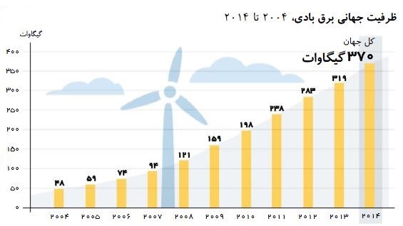 حال بهطور متمرکز به تولید برق بهوسیله باد در جهان پرداخته میشود. در شکل 2 ظرفیت جهانی برق بادی نمایش داده میشود.