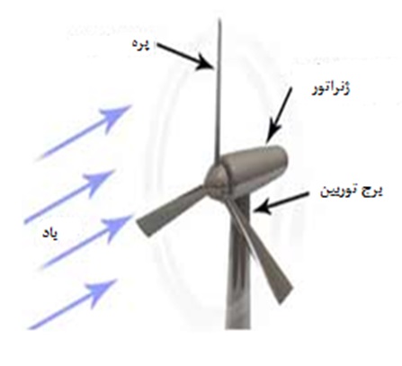 ب: نحوه قرارگیری محور توربین در جهت وزش باد