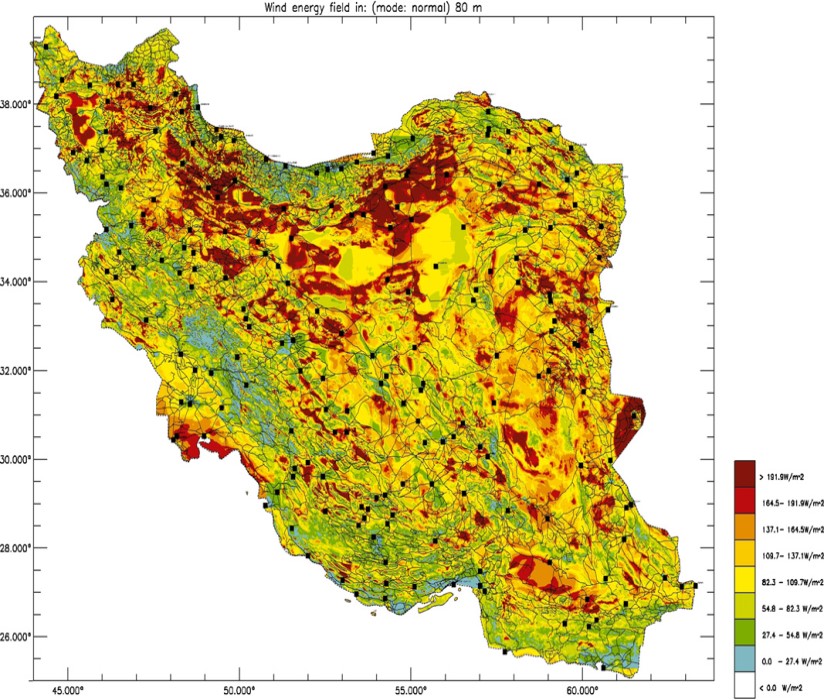 شکل 8- اطلس باد ایران در ارتفاع 80 متری ]7[