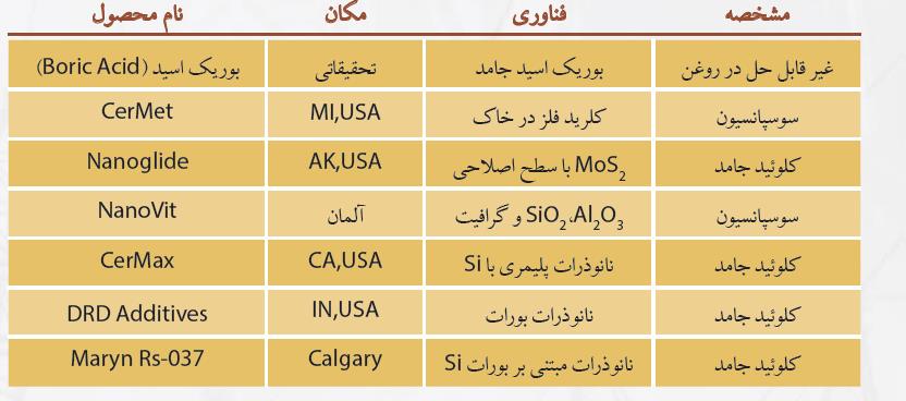 در جدول 1 نمونه ای از فناوریهای مختلفی که در زمینه روان کارها استفاده میشود، آورده شده است. این فناوریها در زمینه روان کارها با اســتفاده از نانو ذرات، ایدهها و محصولاتی را ارائه دادهاند که در جدول 1 بهصورت خلاصه معرفیشدهاند.