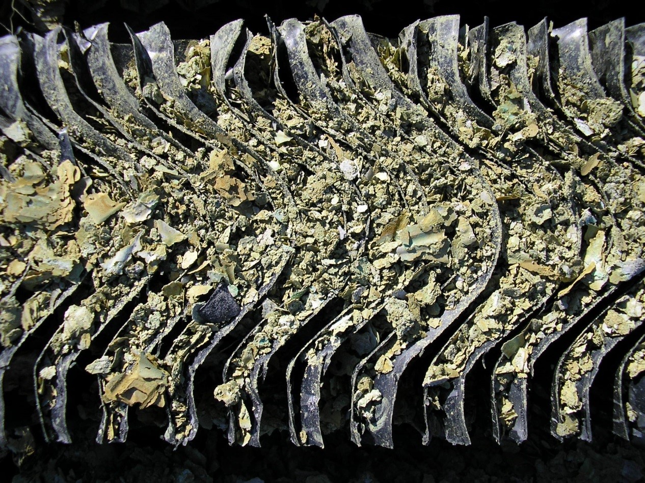 شکل 8. رسوبات ایجاد شده در پکینگ داخلی برج خنک کننده که می توان با استفاده از ترکیبات بازدارنده رسوب و بالا بردن نقطه اشباع آب، ایجاد شدن آنها را به تعویق انداخت [8].